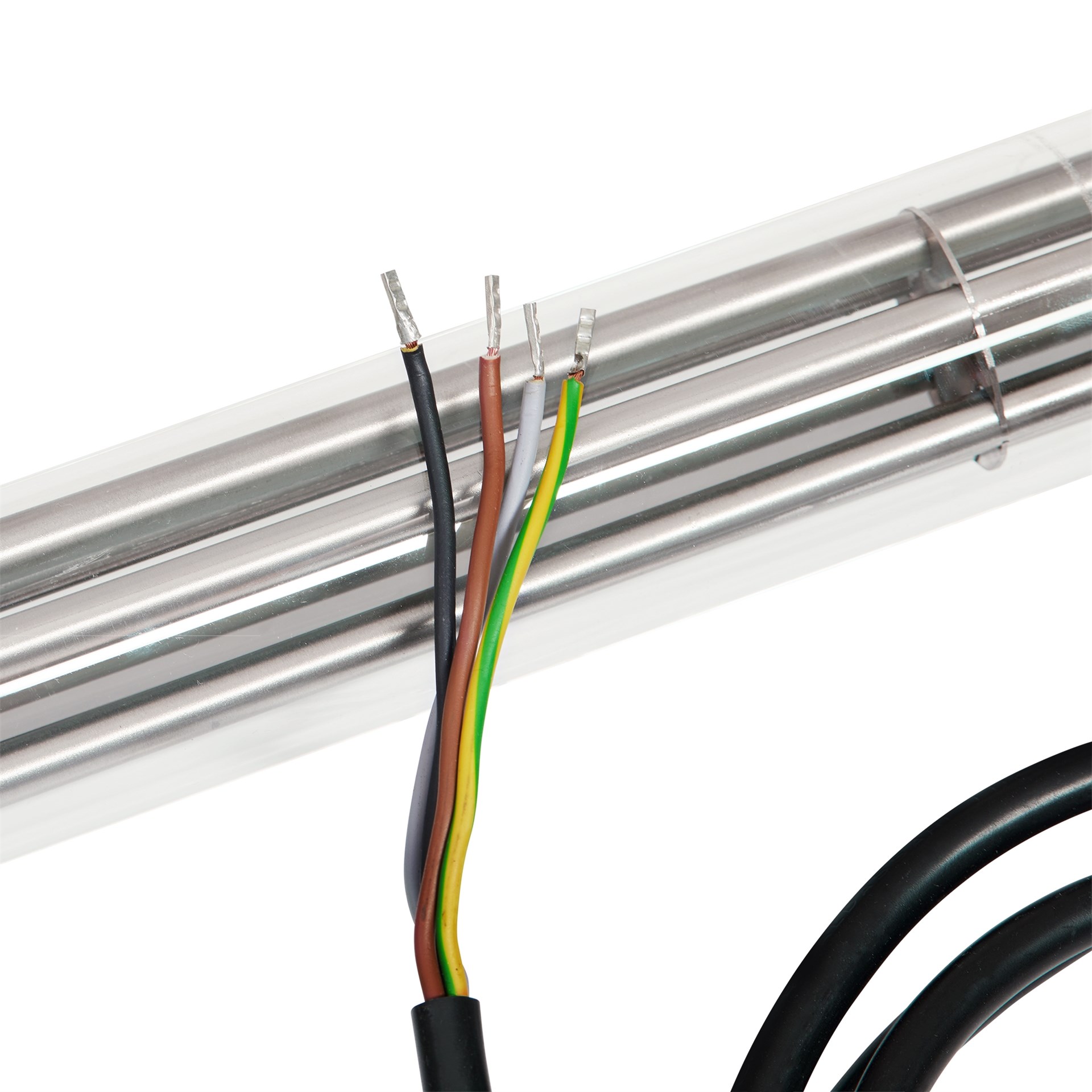 - 2,1 - 2,8 watt/cm2 Quartz grounded element for max. 70°C process temperature.